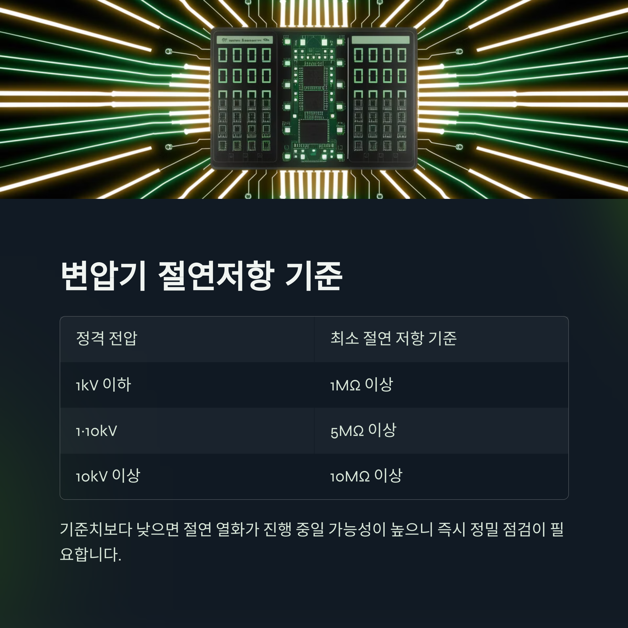 ✅ 절연 저항 값이 지속적으로 낮아진다면 변압기 교체를 고려해야 합니다.