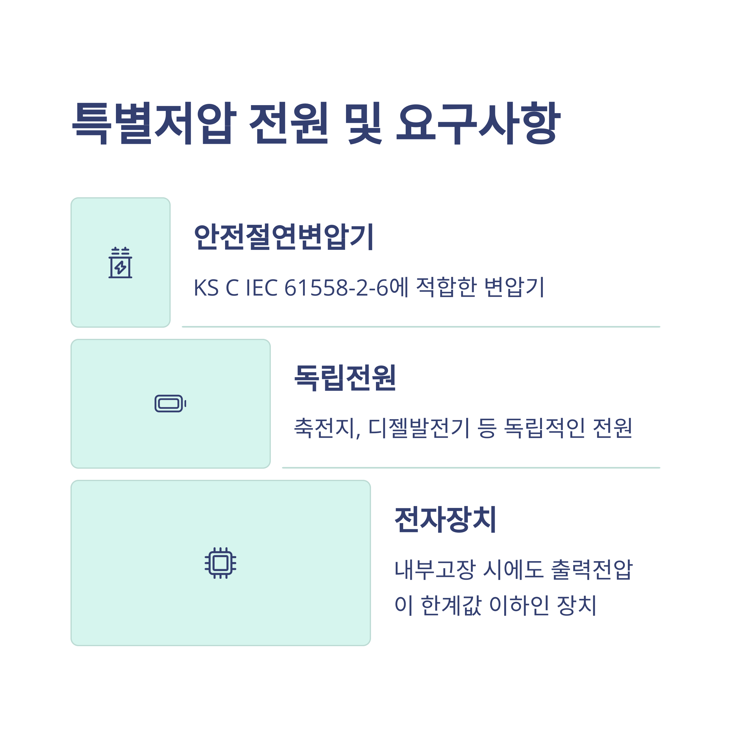 1. 특별저압에 의한 보호는 다음의 특별저압 계통에 의한 보호대책이다.