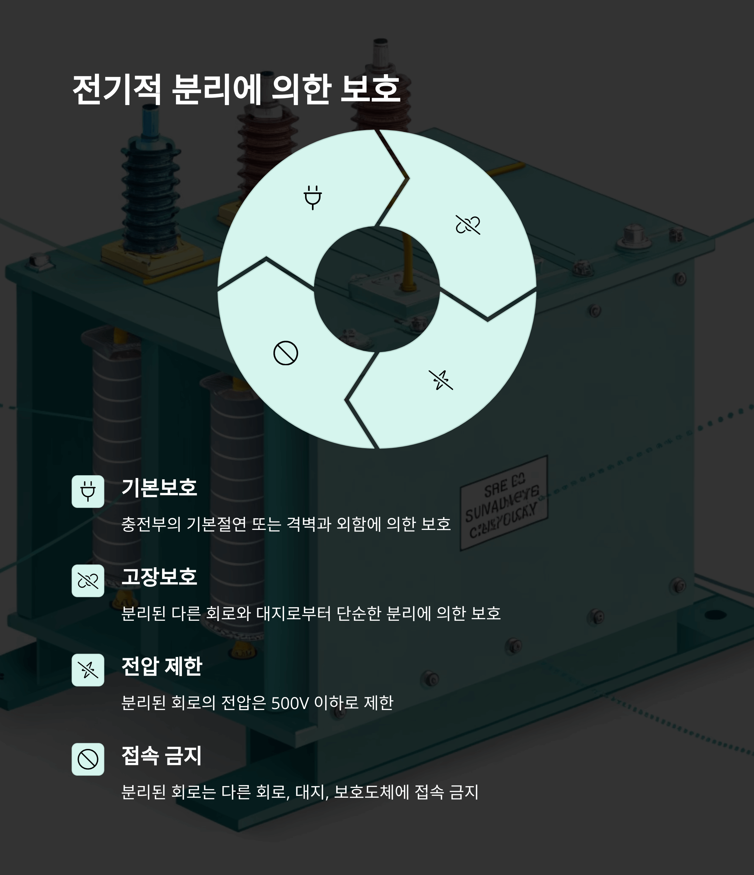 1. 전기적 분리에 의한 보호대책은 다음과 같다.