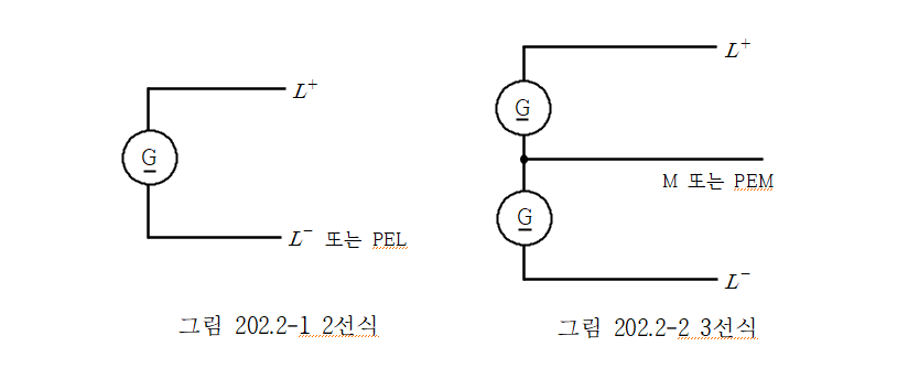 2. 3상 4선식에서 파생되는 단상 2선식 배전방식의 경우 두 도체 모두가 선도체이거나 하나의 선도체와 중성선 또는 하나의 선도체와 PEN 도체이다.