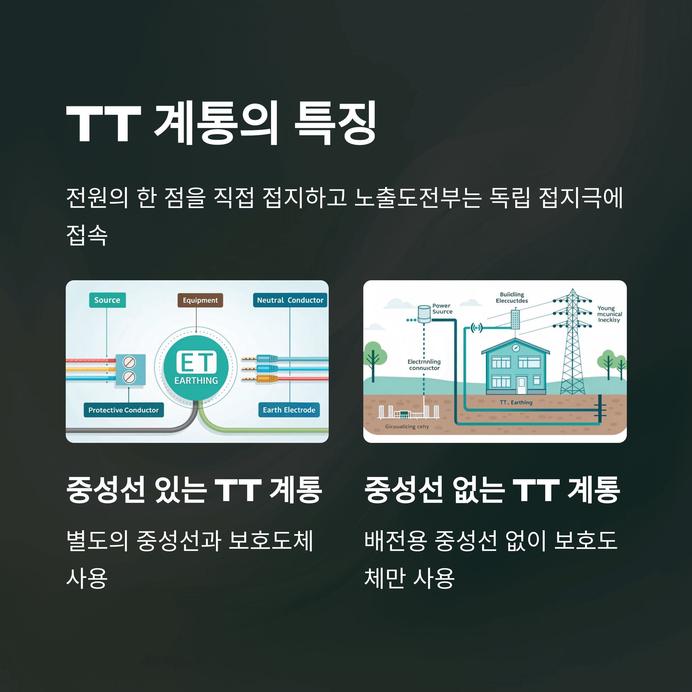 T: 노출도전부를 대지로 직접 접속. 전원계통의 접지와는 무관