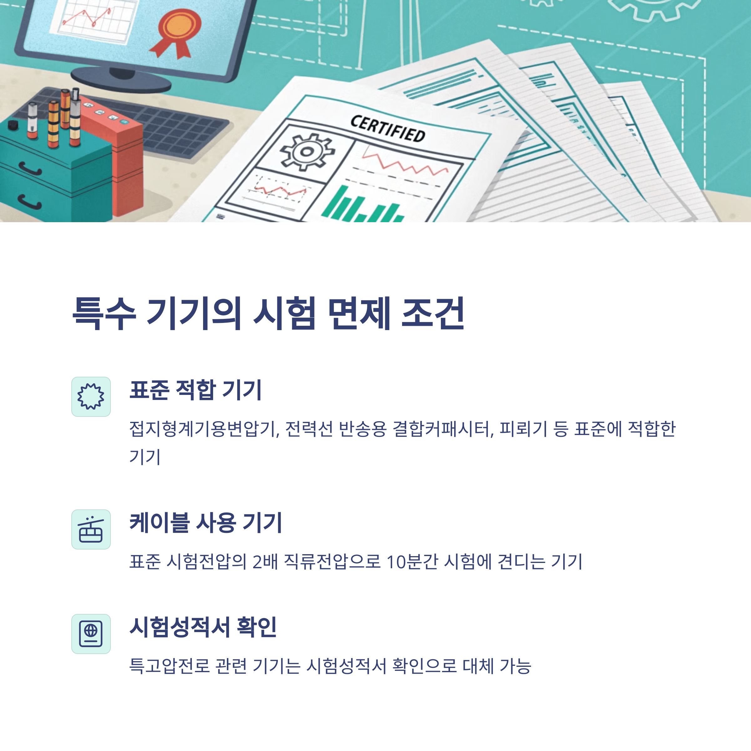 2. 특고압전로와 관련되는 절연내력은 설치하는 기기의 종류별 시험성적서 확인 또는 절연내력 확인방법에 적합한 시험 및 측정을 하고 결과가 적합한 경우에는 제1의 규정에 의하지 아니할 수 있다.