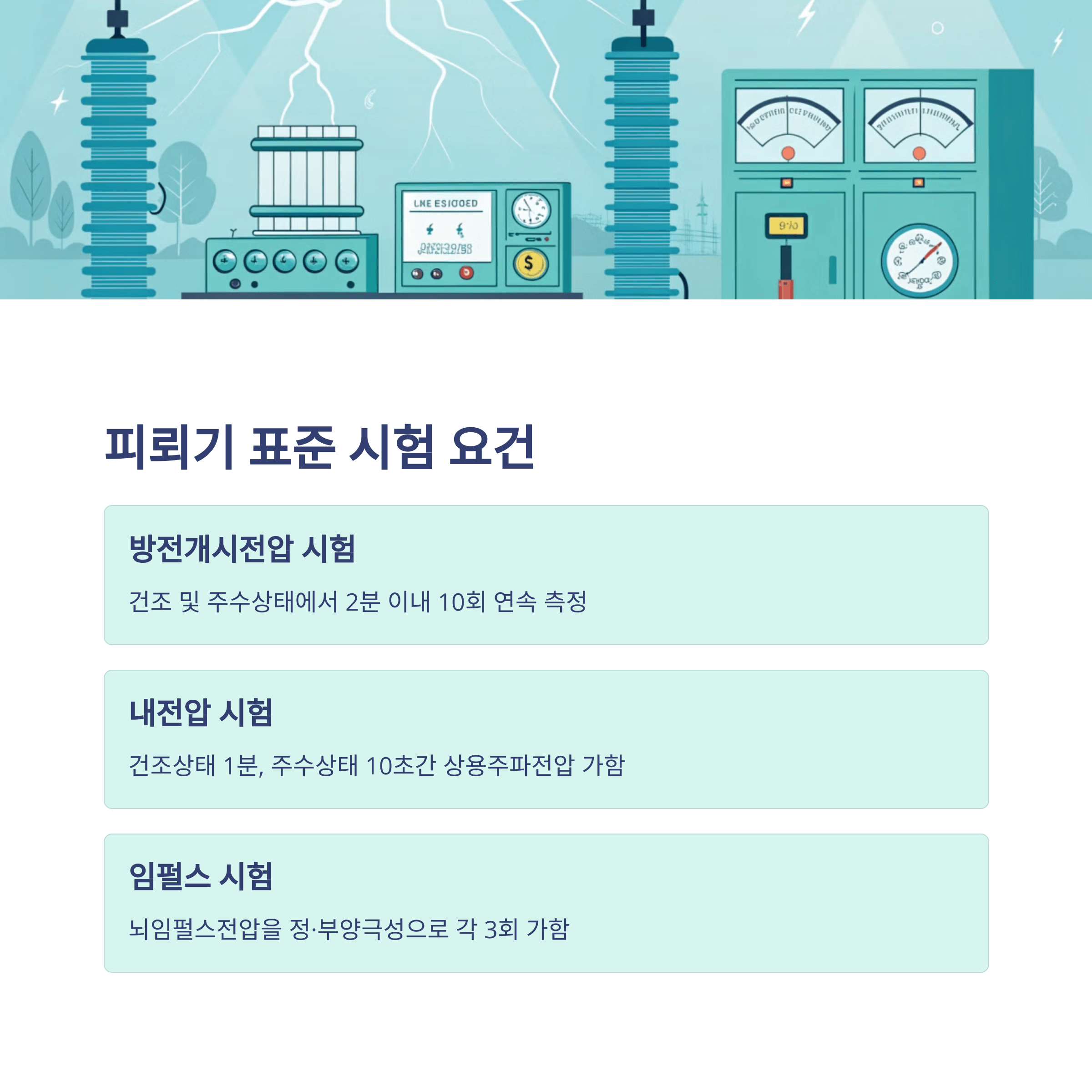 (2) 직렬 갭 및 특성요소를 수납하기 위한 자기용기 등 평상시 또는 동작시에 전압이 인가되는 부분에 대하여 표 136-3의 “상용주파전압”을 건조상태에서 1분간, 주수상태에서 10초간 가할 때 불꽃 방전 또는 파괴되지 아니할 것.