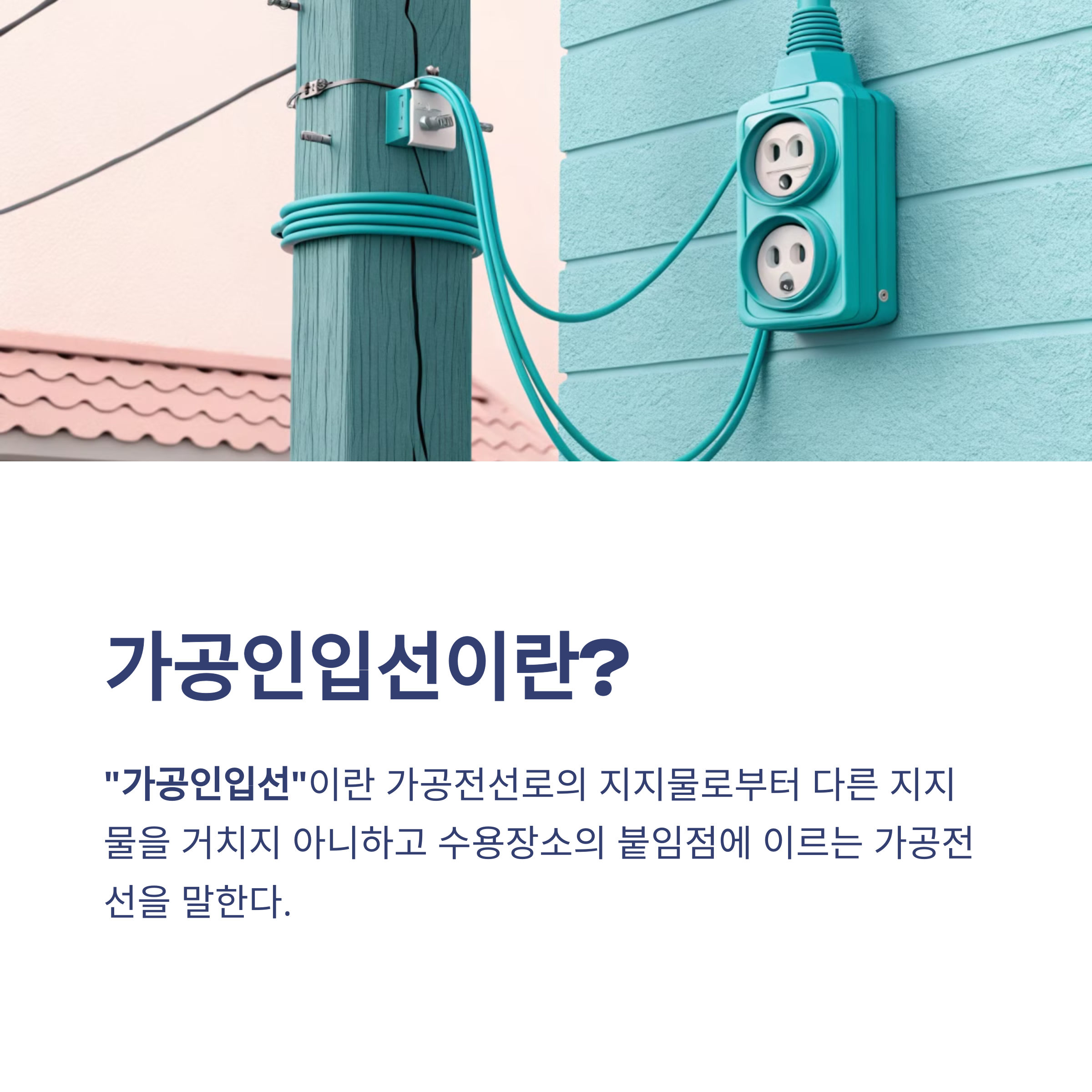 “가공인입선” 이란 가공전선로의 지지물로부터 다른 지지물을 거치지 아니하고 수용장소의 붙임점에 이르는 가공전선을 말한다