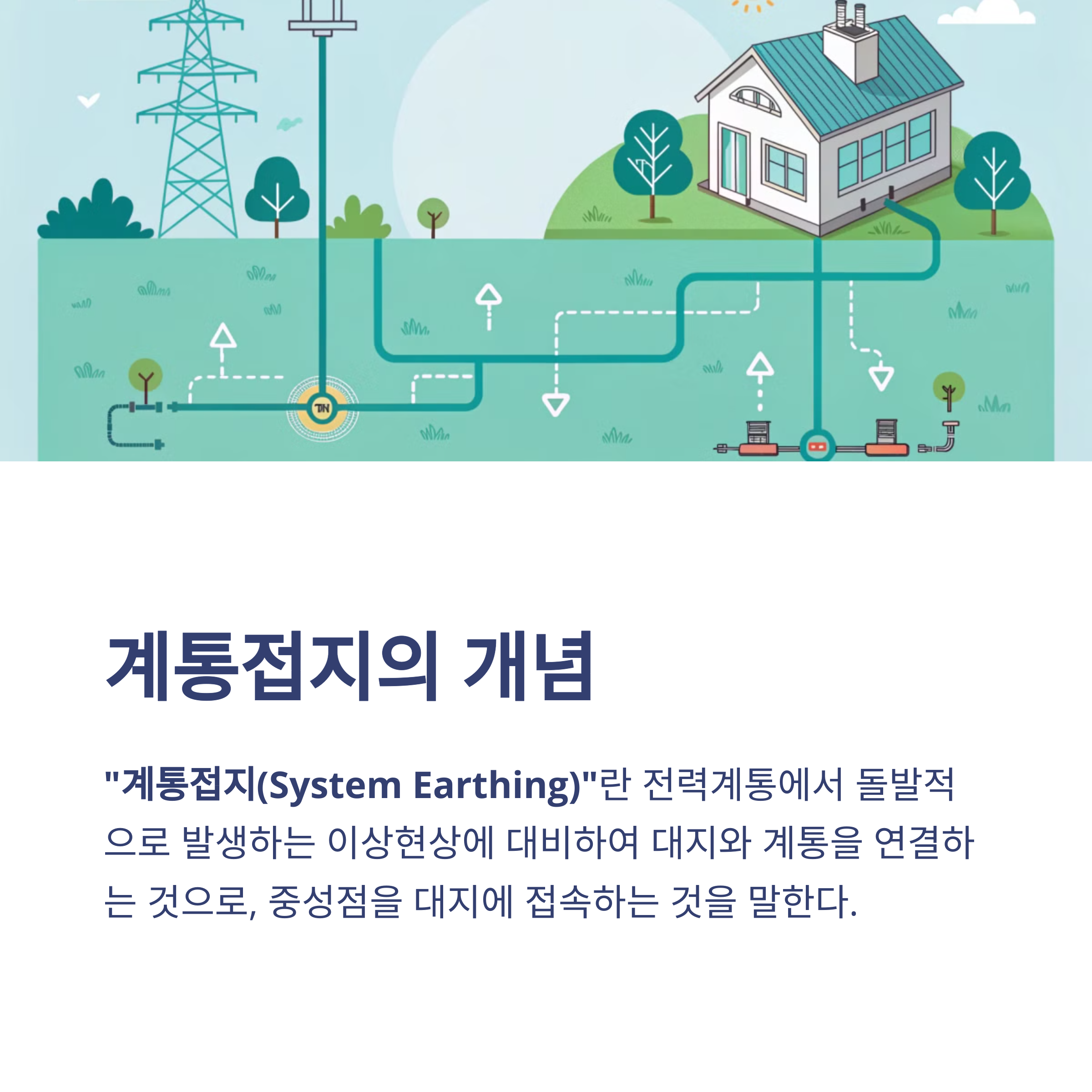 “계통접지(System Earthing)” 란 전력계통에서 돌발적으로 발생하는 이상현상에 대비하여 대지와 계통을 연결하는 것으로, 중성점을 대지에 접속하는 것을 말한다