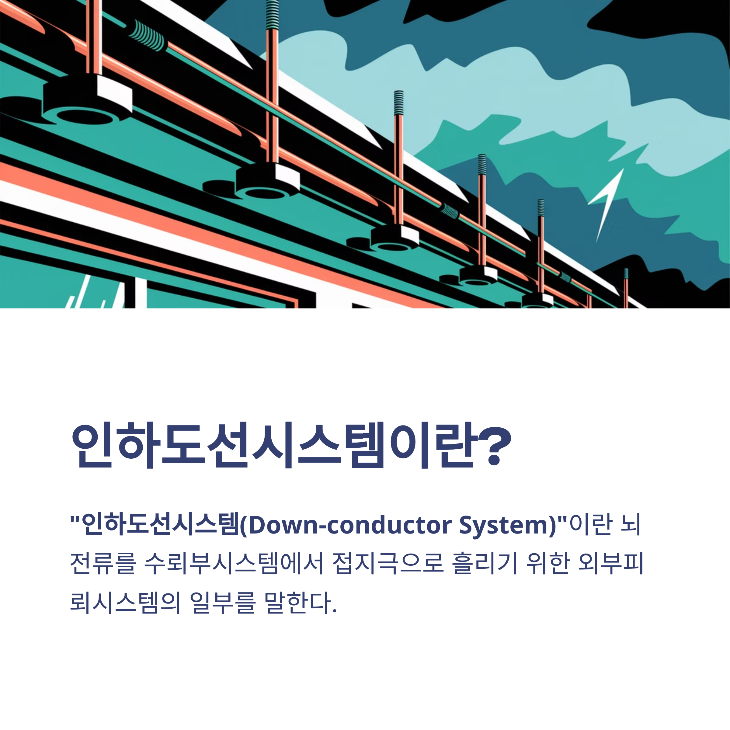 “인하도선시스템(Down-conductor System)” 이란 뇌전류를 수뢰부시스템에서 접지극으로 흘리기 위한 외부피뢰시스템의 일부를 말한다