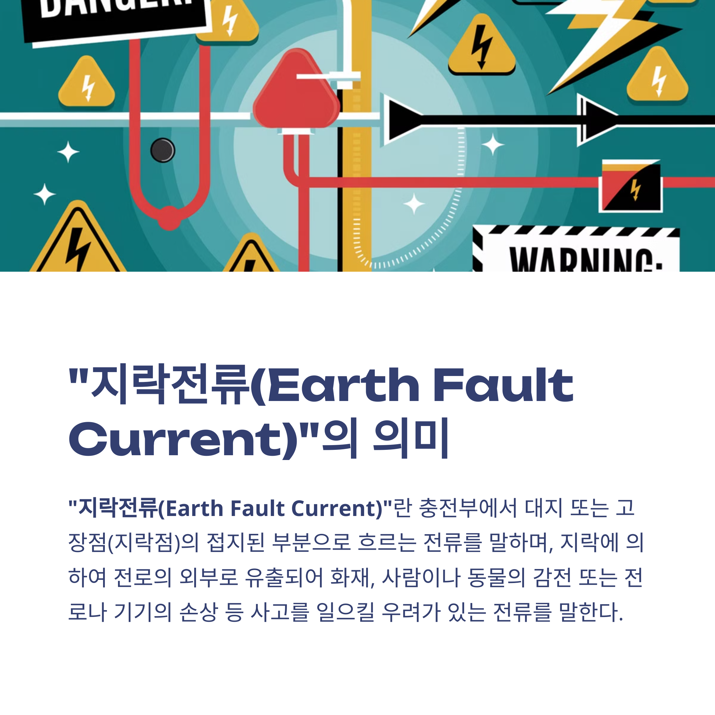 “지락전류(Earth Fault Current)” 란 충전부에서 대지 또는 고장점(지락점)의 접지된 부분으로 흐르는 전류를 말하며, 지락에 의하여 전로의 외부로 유출되어 화재, 사람이나 동물의 감전 또는 전로나 기기의 손상 등 사고를 일으킬 우려가 있는 전류를 말한다